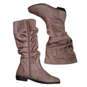 Comfortview dark taupe Shelly Faux Suede Extra Wide Width Calf Boots NEW 8.5WW