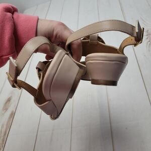 Comfy and cute Comfortview "Rosetta" mini wedge sandal! Nude color with gold ring detailing. Only worn once or twice, size 7.5 wide.