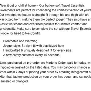 Perfect For: Travel days, lounging, errands, or pairing with the matching Comfrt hoodie for a full set look.