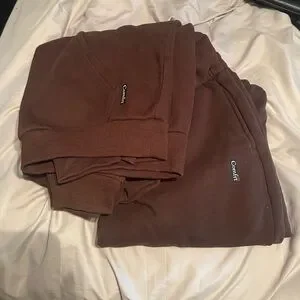 Cozy brown hoodie and sweatpants set by Comfrt. Perfect for lounging. Both size XL.