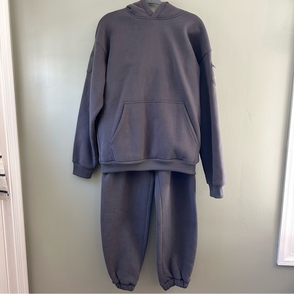 Comfrt travel essentials hoodie and sweatpants set. Nice thick and soft material. In excellent used condition. I believe the color is steel gray. Please refer to photos and measurements for best gauge of condition and fit. Feel free to ask any questions or make an offer!