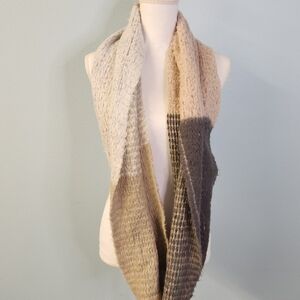 Comfy Beige gray peach ivory blocked Knit Infinity Scarf.