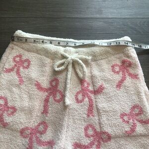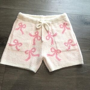 Comfy Luxe High Waisted White & Pink Bow Print Loungewear Shorts Womens Size M/L