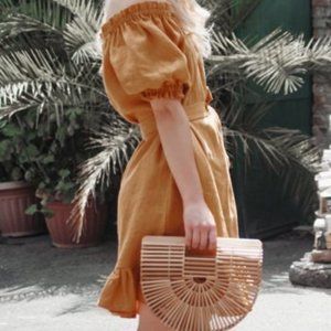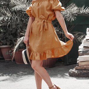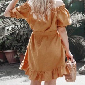 Comfy Cottagecore Off Shoulder High Waist Casual Solid Color Mini A Line Dress