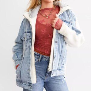 Comfy Sherpa blue Denim Hooded Jacket