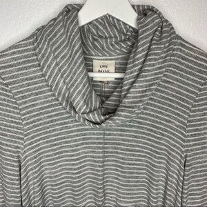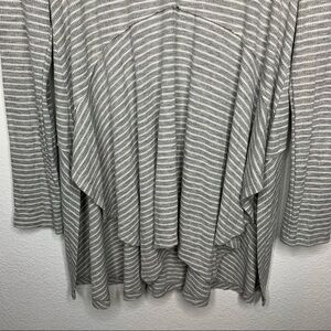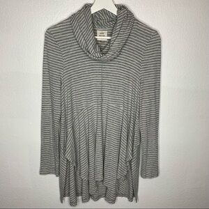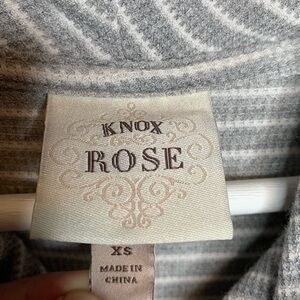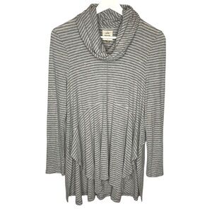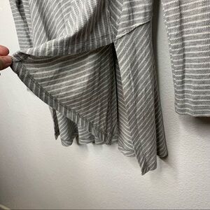 KNOX ROSE Gray White Striped Waffle Knit Lagenlook Style Long Sleeve Tunic Top Extra Small