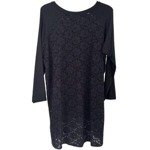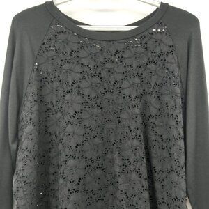Comfy USA Black Lace Raglan Tunic Top Relaxed Hi-Low Lightweight Boxy Artsy M