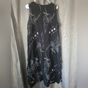 Stylish black dress with unique graphic patterns. Sleeveless design. Perfect for casual outings.