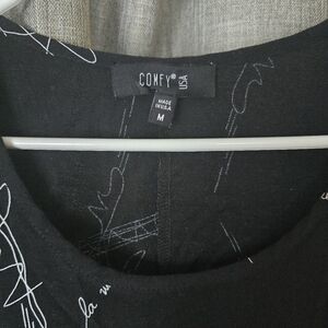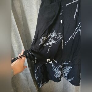 Comfy USA Black Rayon French Script Ruched Side Tie Midi Sleeveless Dress Sz M