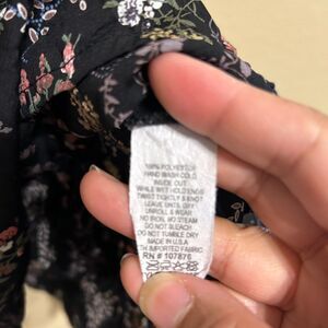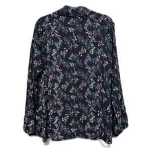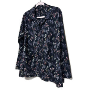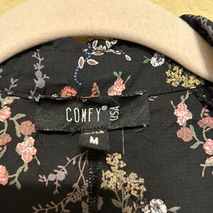 Comfy USA Button Up Blouse Tunic Womens Medium Black Floral Oversized Pockets
