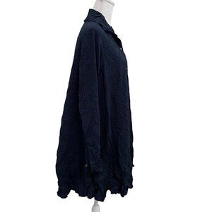 Comfy USA Crinkle Button Down Tunic Top Blouse Lagenlook Navy Blue size Small