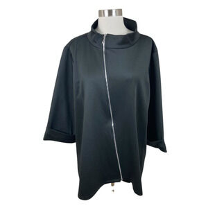 Comfy USA Tunic Jacket Black Zip Lagenlook Minimalist Stretch Size Large