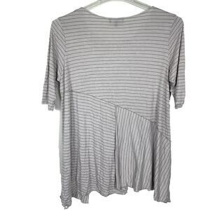 Comfy USA Tunic Top Women’s Small Gray Black Stripe Nautical Lagenlook Stretch