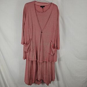 Comfy USA Women's Dress Size Small Red White Stripe Pocket With Cardigan