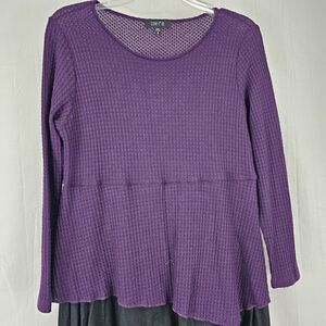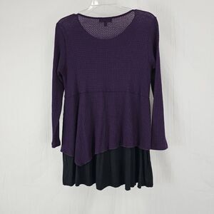 Comfy USA Women's Size Small Purple Thermal Tunic With Black Layered Hem