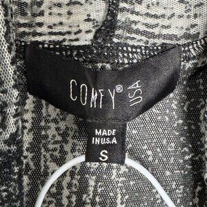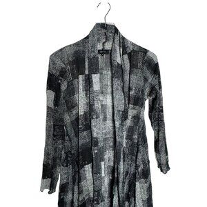 Comfy USA long cardigan duster Black white print mesh size small 3/4 sleeves