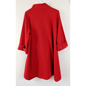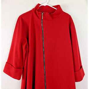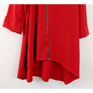 Comfy USA sz M Asymmetrical Zip Tunic Jacket knit red 3/4 cuff sleeves 1376