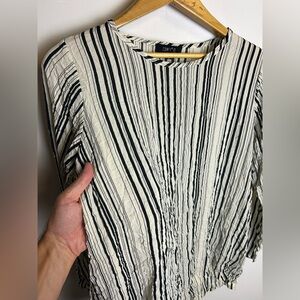 Elevate your wardrobe with this chic striped top. Featuring a classic black and white design, it's perfect for any occasion. Pair it with your favorite jeans or skirt for a stylish look.