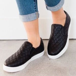 Comfy black Vegan Leather Quilted Slip on Sneakers