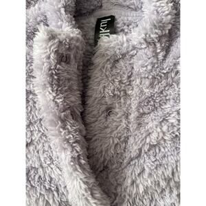 The perfect cozy hoodie in Lavender. 3/4 snap buttons. Pockets on each side. It is fluffy, cozy and perfect for any occasion.