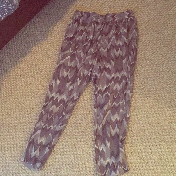 These harem pants are soft and easy to wear. The zigzag pattern makes it even more fun. The pants end right above the ankle. Fit like a size 6 because H and M runs small. Worn twice.