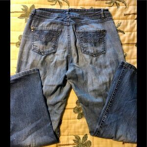 This was one of my favorite jeans and it has lots of wear. Some thin spots on the knee. They have some stretch. Inseam is 29 and rise is 10”.