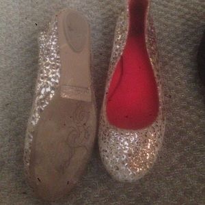 Super comfy I'm not sure what material but it's soft and cushioned. Great for work. Metallic leopard print and definitely a size 7.