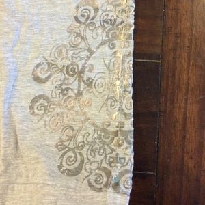 Grey fitted tee, that has a silver/ metallic shiny appearance to the design to the shirt! In great condition! Comfy! Dress it up or down.