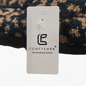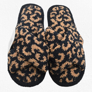 ComfyLuxe Black Leopard Print Cozy Fuzzy Slippers M/L (8–10) Plush Crossband NWT