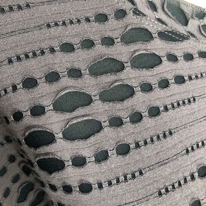 Have fun with this comfy T. Soft and roomy with geometric design of cut out ovals. Gives the appearance of distressing, but obviously intended. In excellent condition.