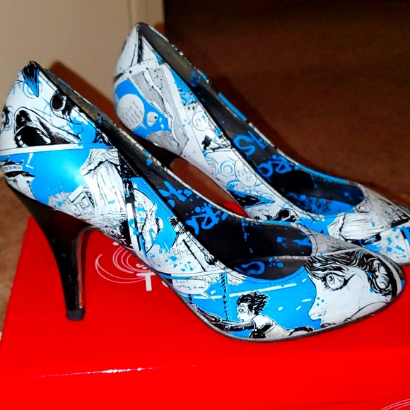 Comic con Heels Blue and Black