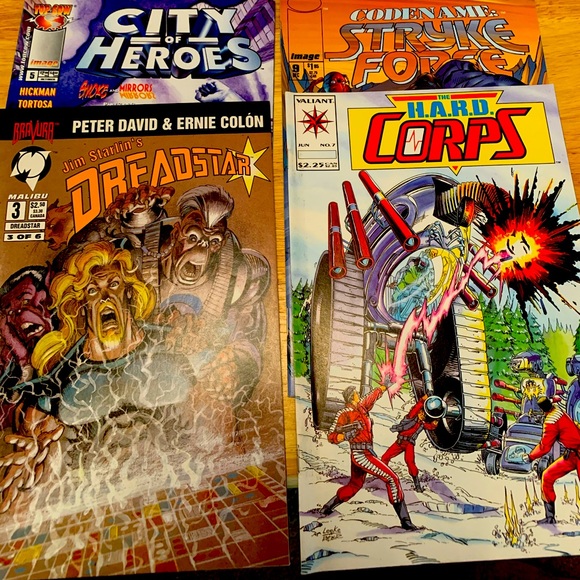 Lot of 4. Codename Strike Force, The Hard Corps, City of Heroes, Dreadstar. Hard Corps has been read others are in good condition.