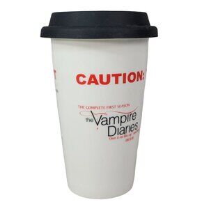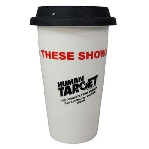 Caution: These Shows are Hot. TV Shows Travel Mug Vampire Diaries V Human Target 2010 Comic Con Silicone Lid 12oz Excellent pre-owned condition with no stains, chips or cracks.