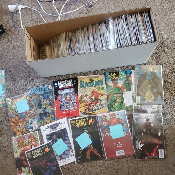 comic books from the 1980s thru early 2000s, tons of value if you pick thru it, and some are rare an worthy of sending it in to get graded