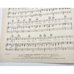 A timeless artifact from the heart of World War II, this 1943 sheet music book features "Comin' In On A Wing And A Prayer," penned by Harold Adamson with music by Jimmy McHugh. It showcases a patriotic design with a dramatic airplane motif and a portrait of Harry James, who popularized the song with his orchestra. Published by Robbins Music Corporation, this piece embodies the courage and perseverance of the wartime era.