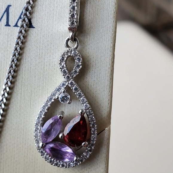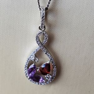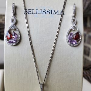 Amethyst, Garnet and Crystal Earring and Necklace Set. Earrings and Necklace are Sterling Silver. Post Earrings.