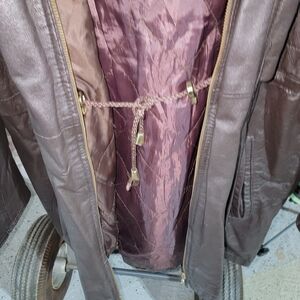 Stylish dark brown leather jacket by Comint. Features a luxurious fur trim, perfect for adding elegance to your wardrobe.