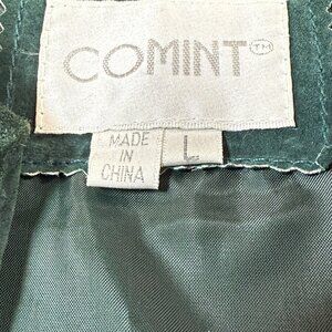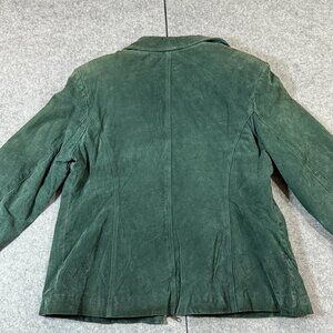 Comint Jacket Womens L Green Lined Genuine Leather Long Sleeve Full Zip Pockets.