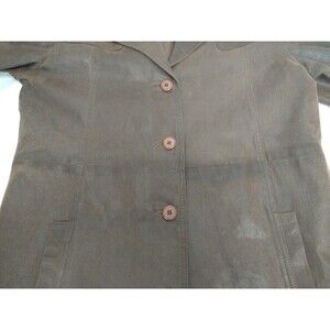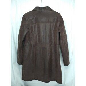 Comint Leather Button Up Jacket Coat Size L Chocolate Brown Pockets Classic