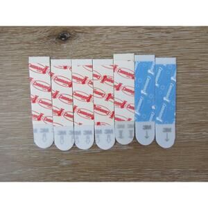Great used condition - comes with 5 regular 3lb/medium adhesive strips and two wet rated medium adhesive strips. A couple of the hooks have the residue of the previous adhesive strip on the back. See photos.