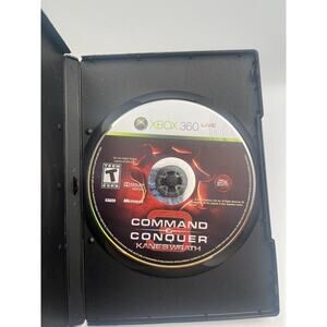 The product is "Command & Conquer: Kanes Wrath" for the Microsoft Xbox 360, released in 2008. It is part of the Command & Conquer video game series published by Electronic Arts. The game is rated T-Teen and follows the real-time strategy gameplay the series is known for. It is in NTSC-U/C format, ensuring compatibility with consoles in the US and Canada. The listing confirms that the game has been tested and is in working condition.