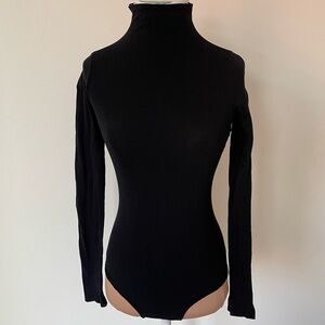 Commando Black Ballet Long Sleeve Mockneck Seamless Thong Bodysuit EUC One Size