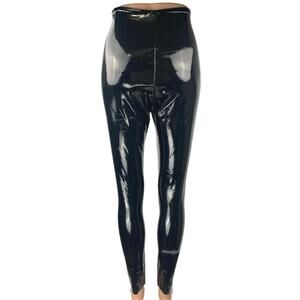 Commando Black Latex Faux Patent Leather High Waist Skinny Leggings Pants Size S