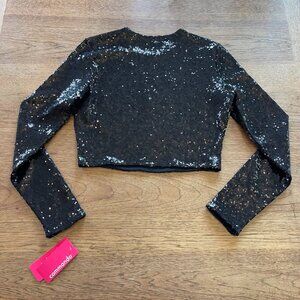 Make a bold statement with the Commando Sequin Long Sleeve Crew Crop Top SEQ204. This stunning top is adorned with all-over sequin details that catch the light and capture attention. With just the right amount of stretch, it provides a comfortable an
