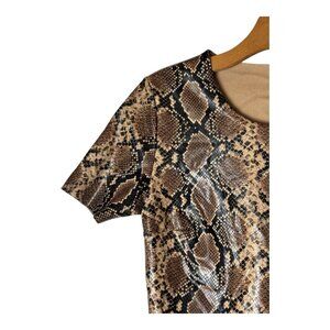 Commando Bodysuit Women Medium Brown Faux Leather Snakeskin Tee Streetwear
