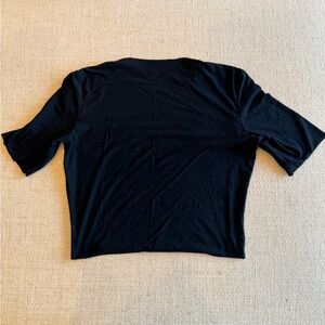 Commando Butter Cropped Tee, a black, lightweight microjersey T-shirt featuring a seamless crew neck design and short sleeves.