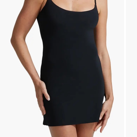 Raw-cut edges at the scooped neck and patented weighted hem ensure an invisible fit in Commando's mini cami slip. Made from European microfiber, the style feels silky-smooth against the skin.