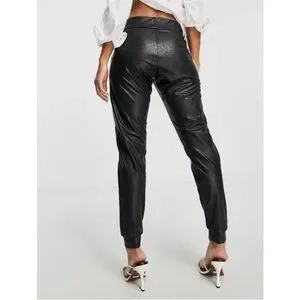 Faux leather jogger pant, side slant pockets, banded