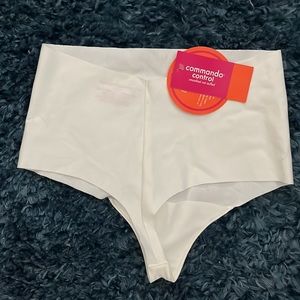 Tags on. Never worn. Raw cut edges. Nylon material with cotton panty lining.