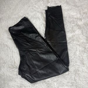 Commando Faux Leather High Rise Leggings Women's Size L Black Perfect Control Raw Hem.